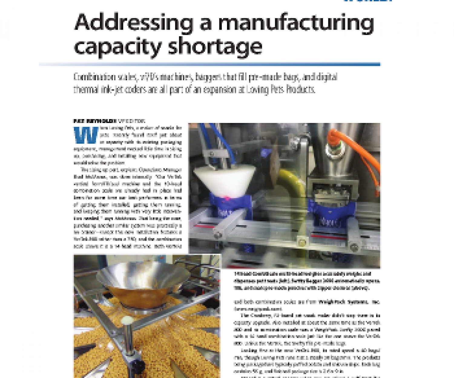 05 Jan 2018 Addressing a manufacturing capacity shortageWhen Loving Pets, a maker of snacks for pets, recently found itself just about at capacity with its existing packaging…
