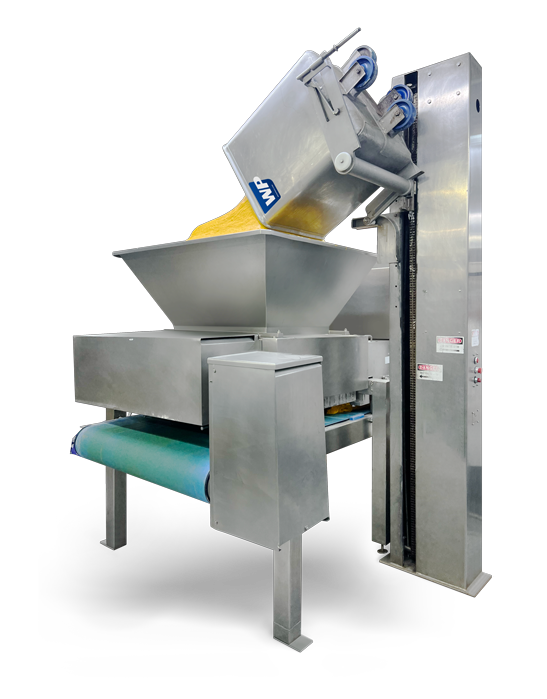 We offer a variety of automatic cart lifting systems for all industries that desire automatic product feeding prior to weighing and processing.