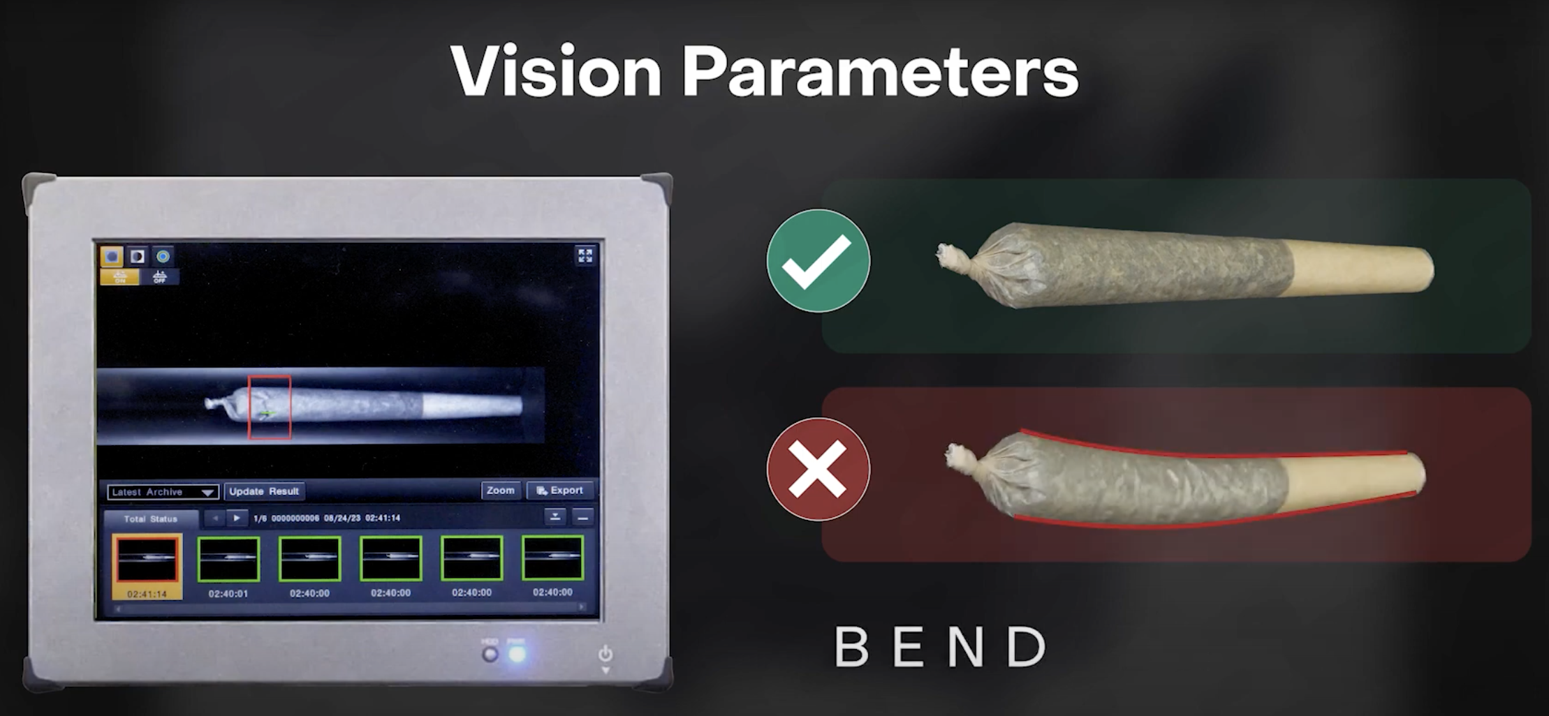 The Vision360 stands out by its ability to efficiently identify abnormalities in the products, as well as to analyze various characteristics such as length, depth, angles, cuts, tears, and more. We understand that flexibility is crucial for you, which is why we have ensured that all settings can be tailored to individual preferences and easily edited based on specific requirements for each product type.