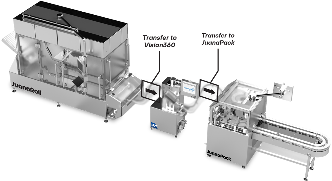 The high-performance JuanaRoll is designed to accurately weigh, fill, compact, tamp, twist and trim pre-rolls at the industry’s highest speeds – From 1,000 to 3,600 per hour