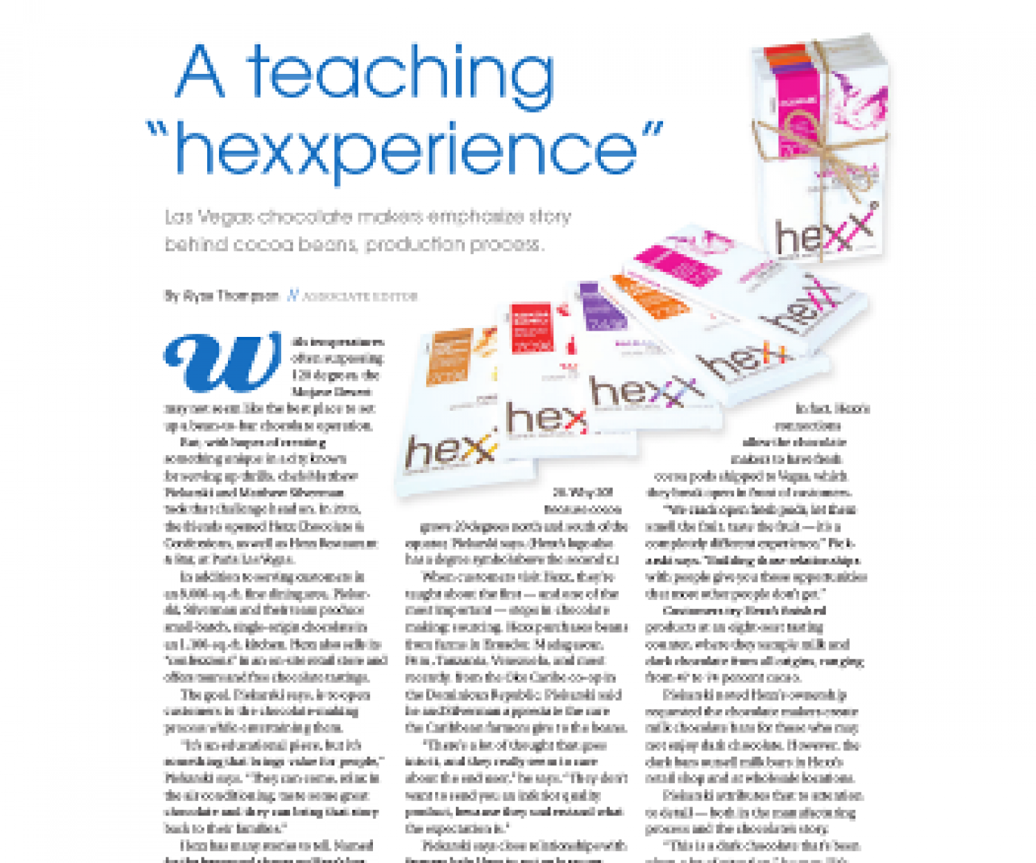 Articles 05 Jan 2018 Hex Candy IndustryLas Vegas chocolate makers emphasize story behind cocoa beans, production process. With temperatures often surpassing 120 degrees, the Mojave Desert… Thiru
